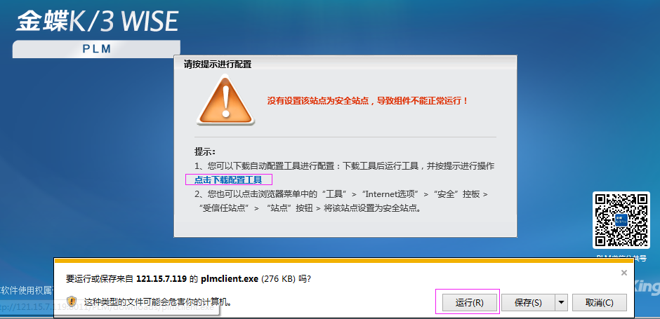 首次打开会提示进行配置,请点击下载本地配置工具,按要求更新组件后重新打开浏览器即可进入登陆界面: