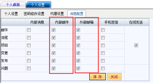 提示:个人邮箱设置好后,再勾选消息配置的外部邮箱,系统就会自动发送邮件到您的外部邮箱
