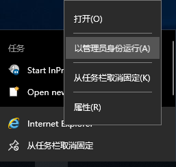 4)如果操作系统为Windows 10,在首次安装组件时要使用管理员权限:右键点击Internet Explorer,然后选择“以管理员身份运行”,否则无法安装成功